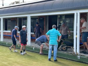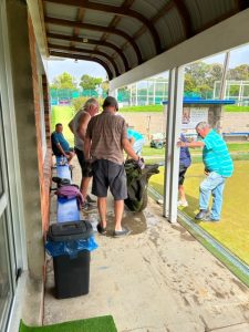 There is still more work to do, however we anticipate that, provided there is no more serious rain fall, both the Knightsbridge and the Mayfair natural greens will be available on Saturday for the singles championships and that the Harcourt’s Community carpet green will be available for the Saturday pm Haggle. Watch this space for updates.