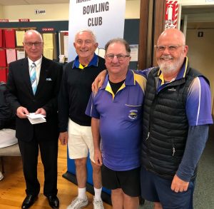 The visiting team of Ian McKenzie, Wynne Gray and Dennis Hale had three and a half wins, took out the top spot and were presented their winnings by Graeme Rodgers JP – Managing & Funeral Director at the Browns Bay branch of Forrest Funeral Services. Well done and congratulations Ian, Wynne and Dennis. We hope you enjoyed your day of bowls at Mairangi Bay and that you will return shortly.