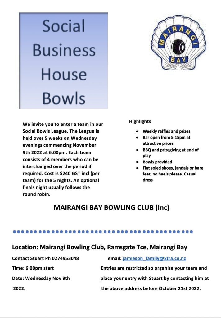 There are already many entries for our pre Christmas Business House Bowls and if you plan to be involved, we would encourage you to enter a team as the entries will close off on 21st October.