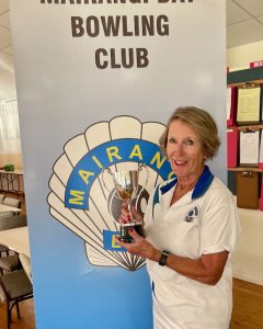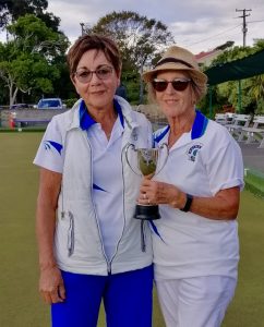Judi started off well in the final but Gaye came back to get in front, Judi then retook the lead with some lovely draw bowls, particularly on her last or second last bowl. Not to be outdone Gaye clawed her way back and on the last end, with time up, it ended 18 all. An extra end was played, Gaye was holding two but there was room to draw. Judi drew the shot, Gaye played a slightly weighted shot looking for the jack or Judi’s bowl, but missed.