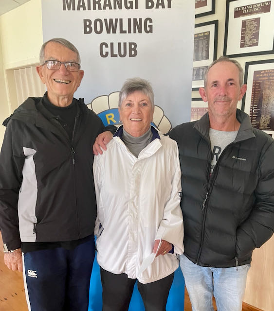 So, what happened in the bowls?  Well the only reason to take a new photo was that the winning team had changed their wind-breakers.  Congratulations to the team of Murray Radojkovich, Colleen Rice (birthday girl) and David Payne.  Congratulations.  The pressure is now on to make it a three-peat.