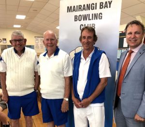 The weather played it’s part with the forecast afternoon showers staying away and with just a light breeze lifting the flags.  The greens were running quick and true, and it was great to see visitors, as well as the usual Mairangi teams.  The every second Thursday triples events are gaining in popularity with the fields getting larger each fortnight.  Visiting teams are adding to the Mairangi teams, swelling the ranks and making the games even more competitive.