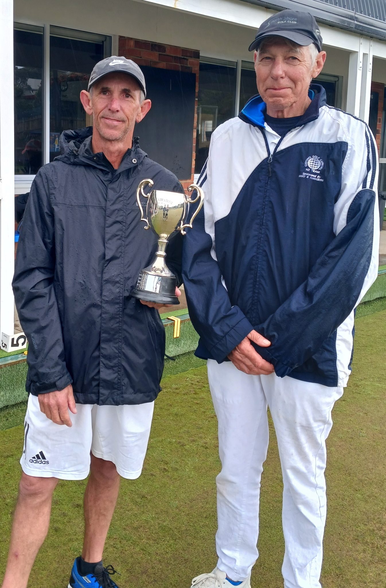 Leon Wech and Ron Horne v David Payne and Barry Baillie. Plus 2 handicap advantage to the Payne team.  Leon and Ron were not in their earlier form, Barry was leading extremely well and David coming in with critical bowls, they raced to a 12-4 lead after eight ends.  The weather was starting to close in, more wind and definitely cooler with a few showers.  David and Barry continued to bowl well and Leon and Ron struggled, David and Barry taking a deserved win 19-7.