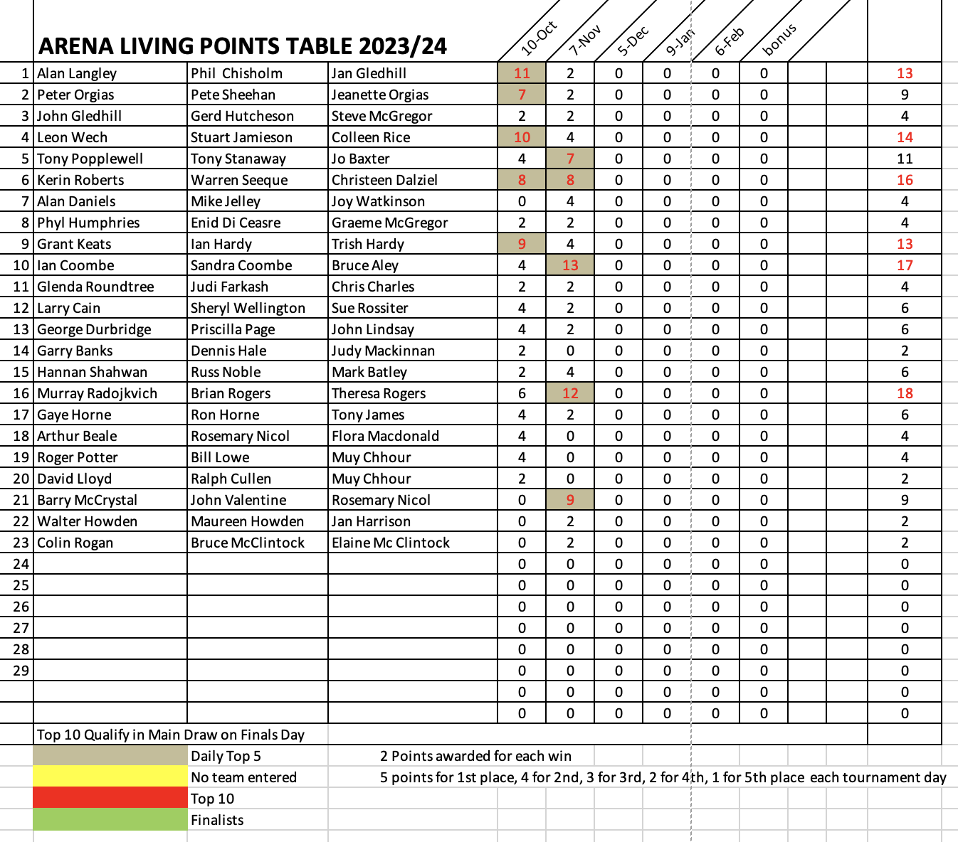 Winners were Ian Coombe, Sandra Coombe & Bruce Aley with 4 wins, 33 ends & 74 points.