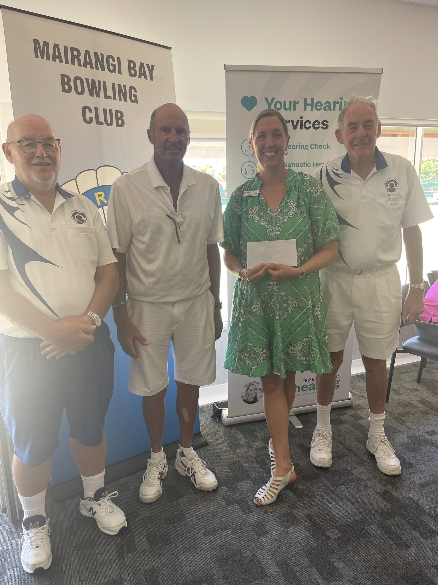 On a lovely sunny and not too hot day, 19 teams of triples and one pair participated in the latest and popular single-entry tournament sponsored by Theresa Burns Hearing .