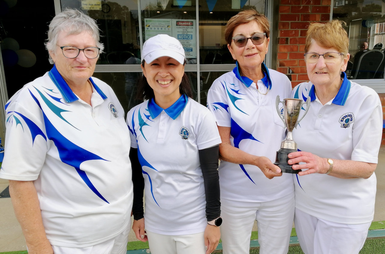 At the same time Sheryl and Julie were playing Elaine and Marie, winning with 23-13, becoming finalists against Gaye and Sherril. A few showers didn’t stop this becoming a great game with a very exciting final. Being quite even for most of the game, Gaye and Sheryl, being 2 down for the last end, managed to get a 3, claiming the win. Well done and congratulations!