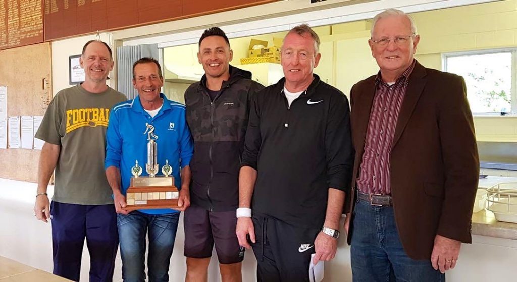 The winners of the event were the very strong composite team (see attached photo) of Bob Telfer Takapuna, Jerome Rusk and Jerry Belcher Birkenhead and Kevin Rainsford Manly. Also pictured in the photo is Tony Stanaway who presented the Trophy on behalf of the Stanaway family. They had four wins on the day, the only team to do so and also beat all three Mairangi Bay teams.