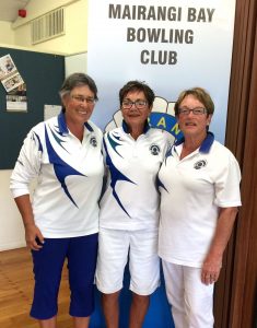 The winners were Sandra Coombe, Gaye Horne & Gayle Wilkinson with 4 wins, 25 ends & 47 points.